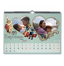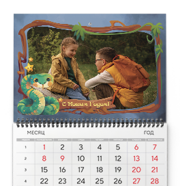 Календари с дизайном на каждый месяц. Отметьте даты фотографиями, разместив их в специальных ячейках.