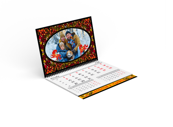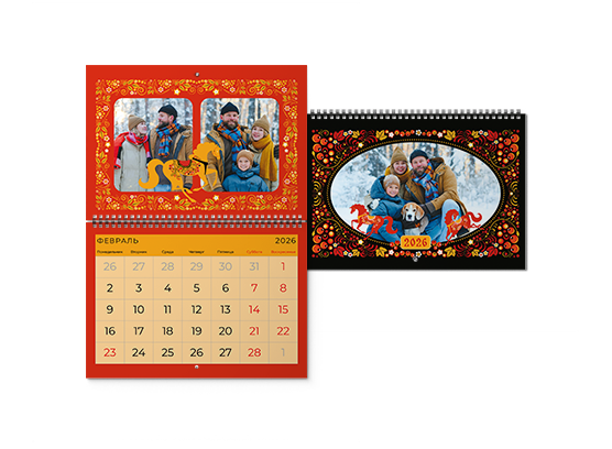 В нашем ассортименте — от карманных календариков до крупных настенных: А2 и больше, размером с ватман. Настольные и настенные календари с символом года Лошадью делаем как отрывными — с отдельными листами для каждого месяца, так и неотрывными — цельными или с переворачиваемыми страницами.