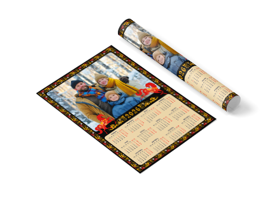 Листовые (плакаты) и перекидные календари с символом года Лошадью — с большой областью под изображение. Такие лучше подходят в качестве декора интерьера, подарка или на продажу. Форматы плакатных календарей — от А5 до А1, самые частые для остальных видов - А4 и А3.