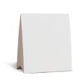 Печатаем два вида тейбл-тентов из бумаги плотностью 250 г/м2. Первый — трехгранная стойка, которую можно расположить вертикально или горизонтально. Второй — домик с двумя сторонами для вашей информации. Каждый вариант можно дополнительно защитить ламинацией.