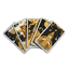 Напечатаем колоды по вашему макету: лицевая сторона и рубашка — полноцветно, с точной передачей тонов и тонких линий. Используем плотный карточный картон 300 г/м2, углы аккуратно скругляем. Можем сохранить естественную бумажную фактуру без ламинации, выполнить двустороннюю ламинацию: матовую или глянцевую, софт‑тач для бархатистого скольжения при тасовке или голографическую для вау-эффекта. Состав набора — стандартные 78 карт. Упаковку оформим в вашем стиле, чтобы колода выглядела завершенной и удобно хранилась.